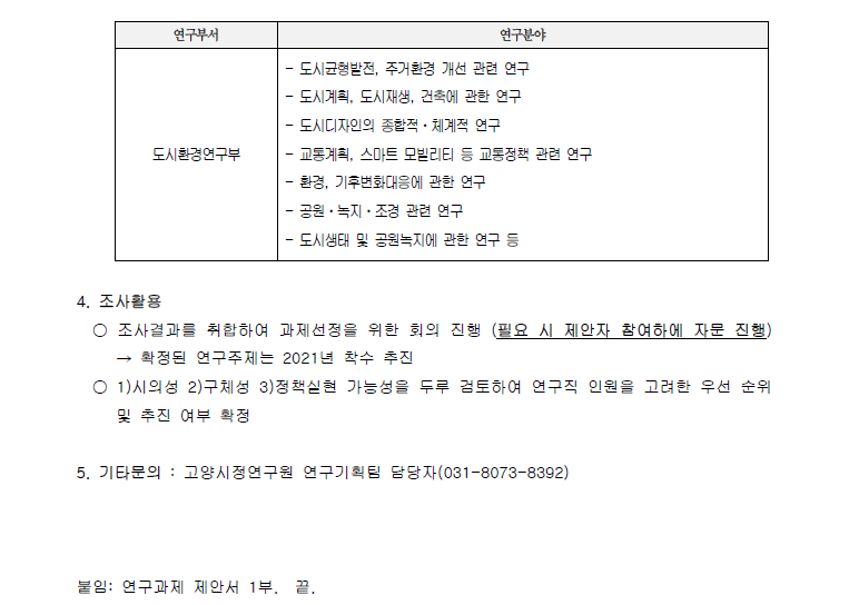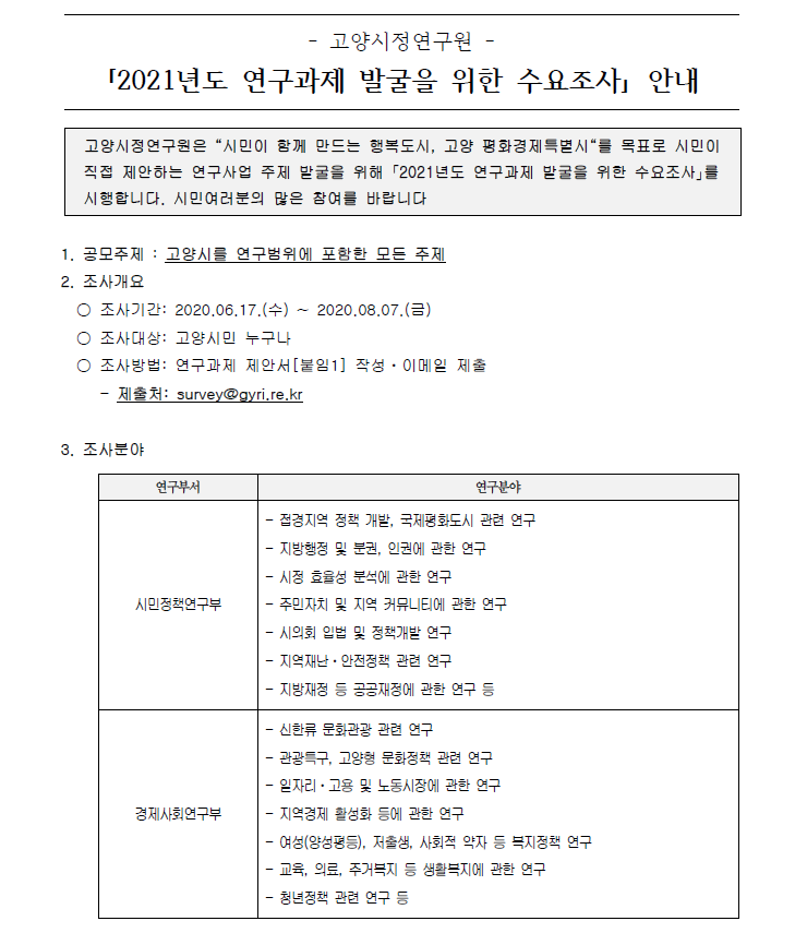 「2021년도 연구과제 발굴을 위한 수요조사」 안내