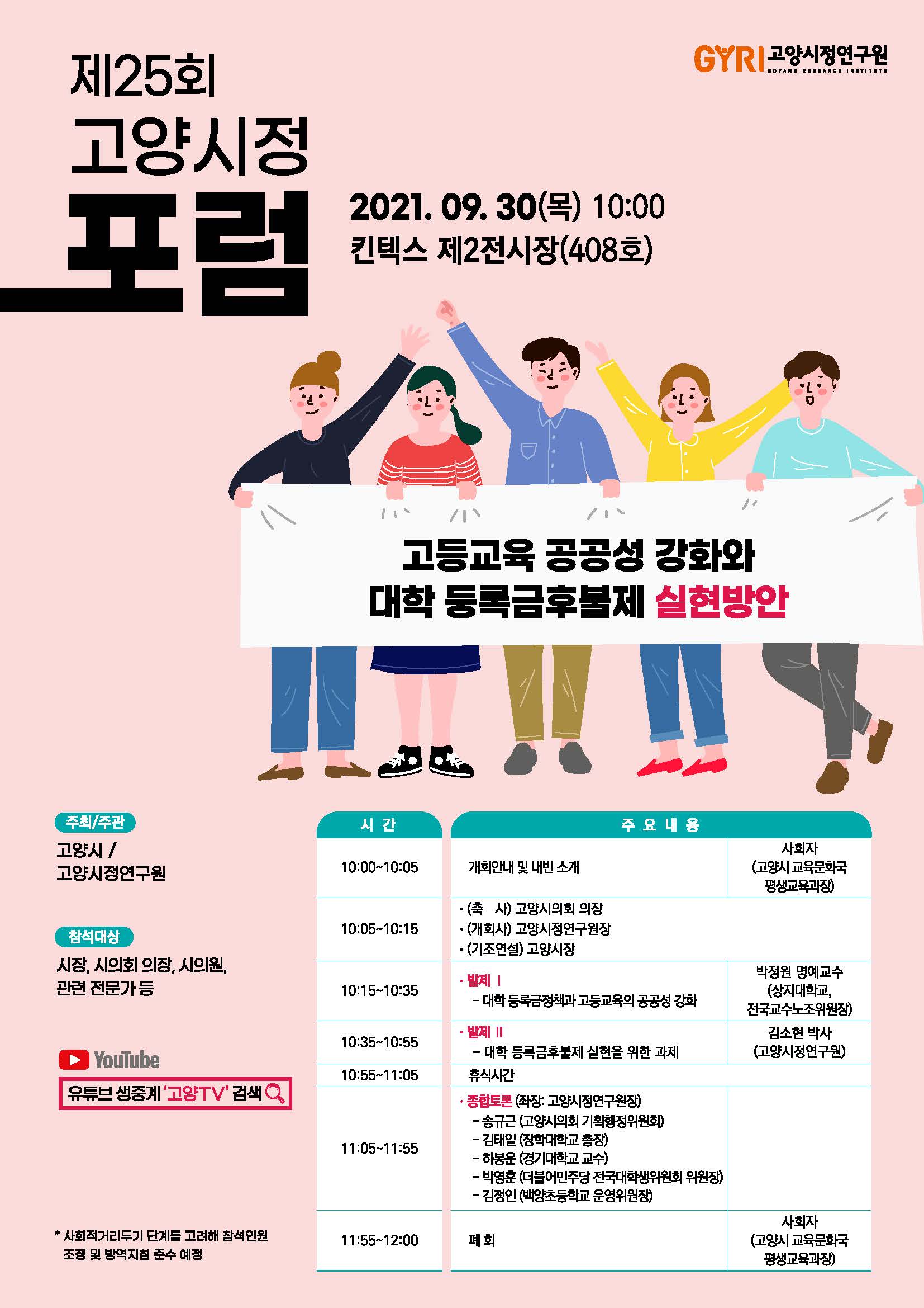 제25회 고양시정포럼: 고등교육 공공성 강화와 대학 등록금후불제 실현방안