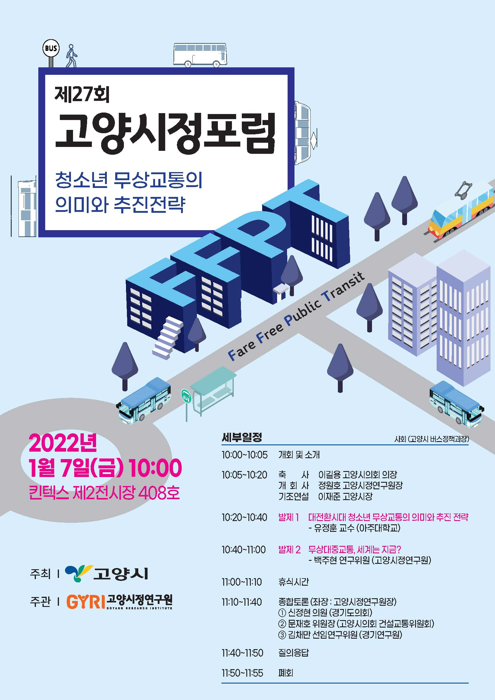 제27회 고양시정포럼: 청소년 무상교통의 의미와 추진전략