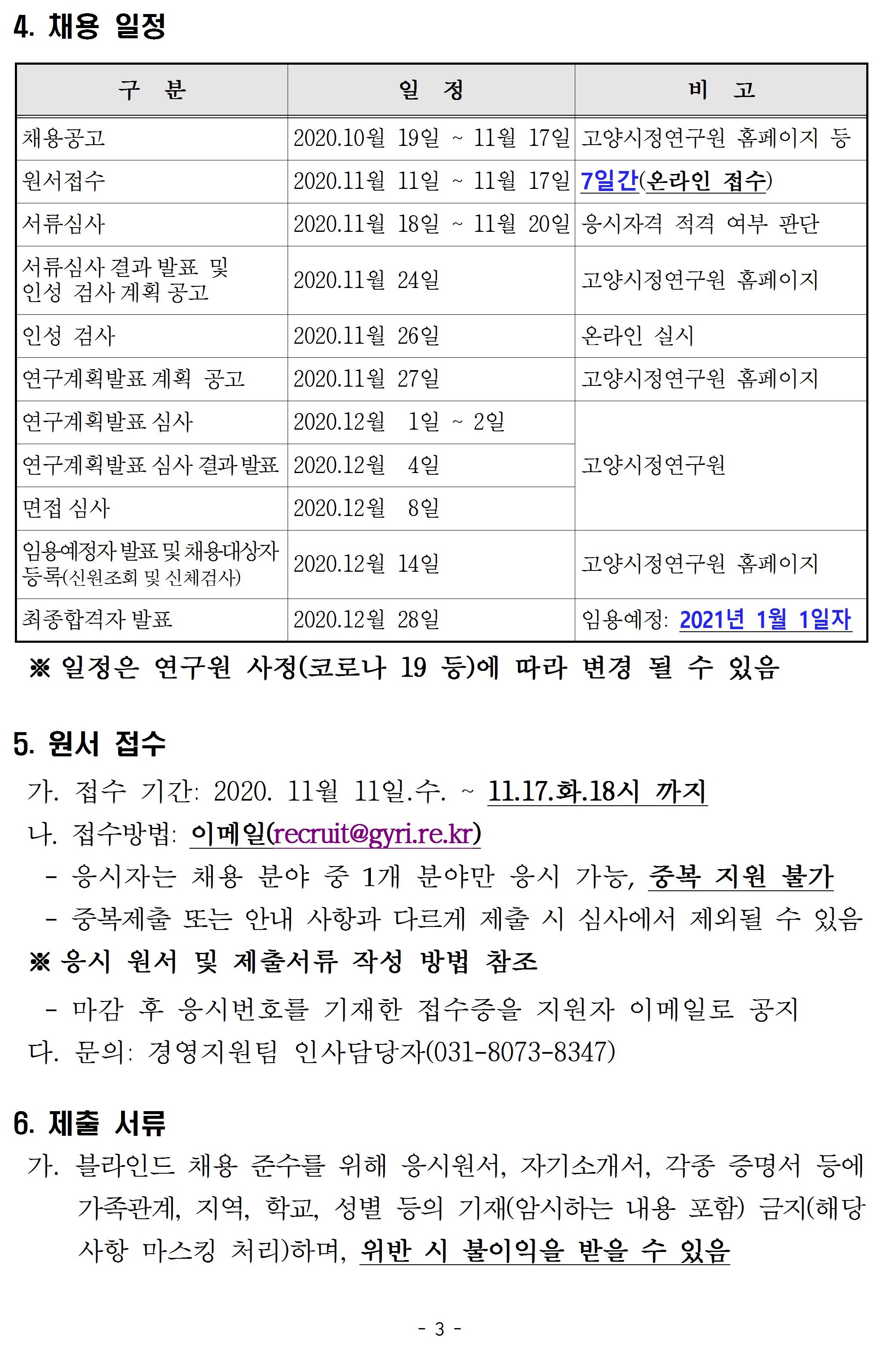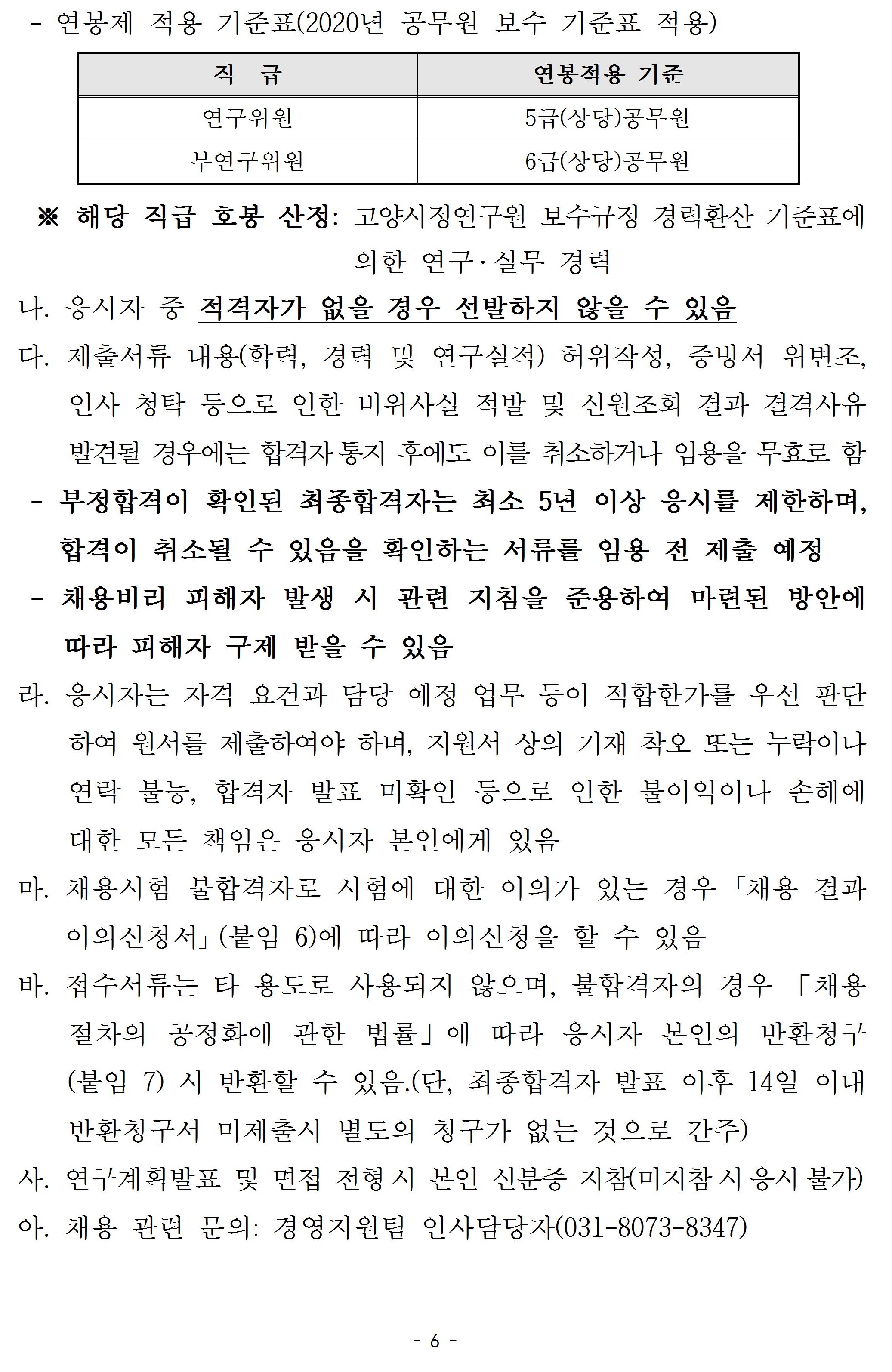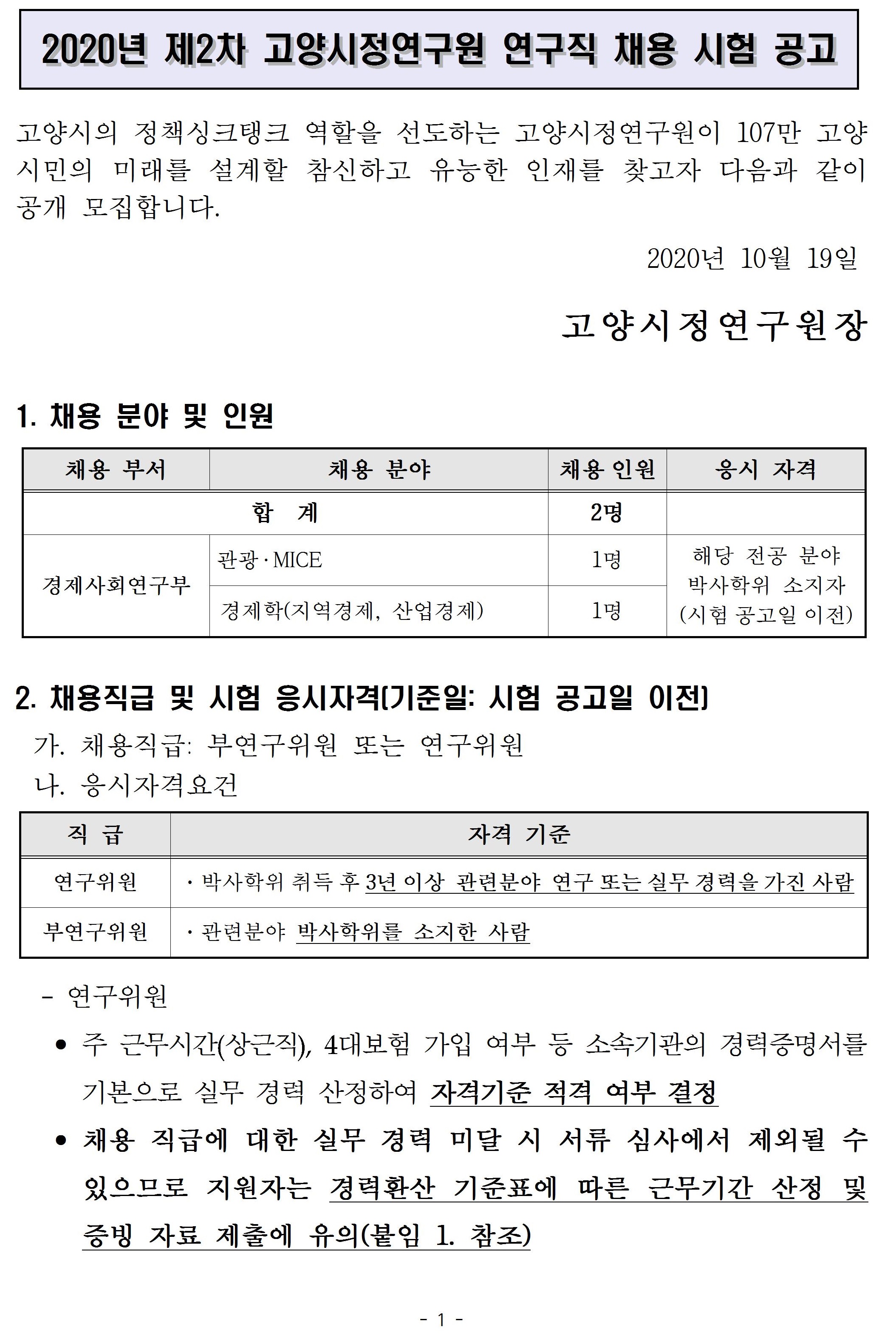 2020년 제2차 고양시정연구원 연구직 채용 시험 공고문.hwp