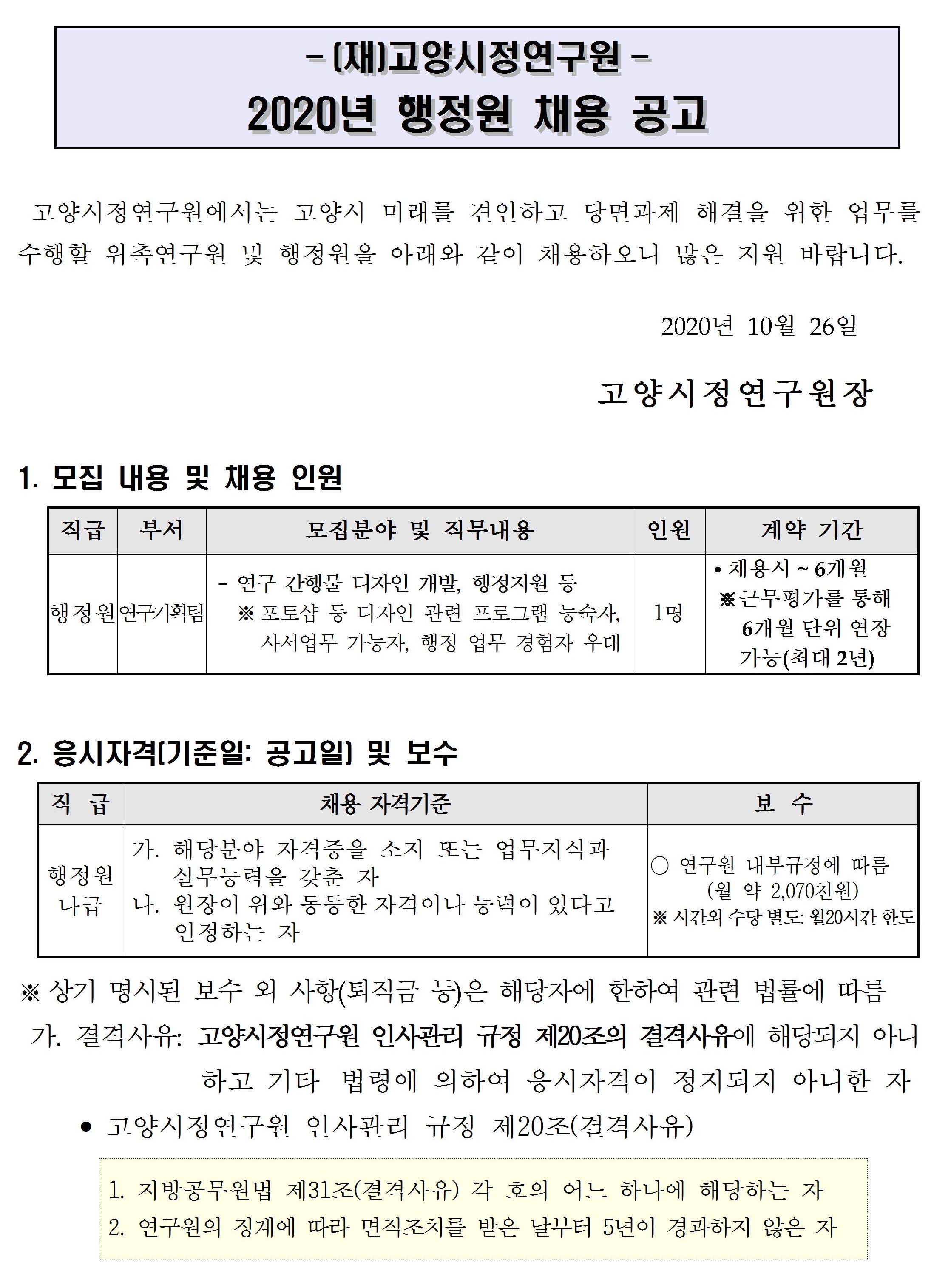 20201026_고양시정연구원 2020년 행정원 채용 공고문.hwp