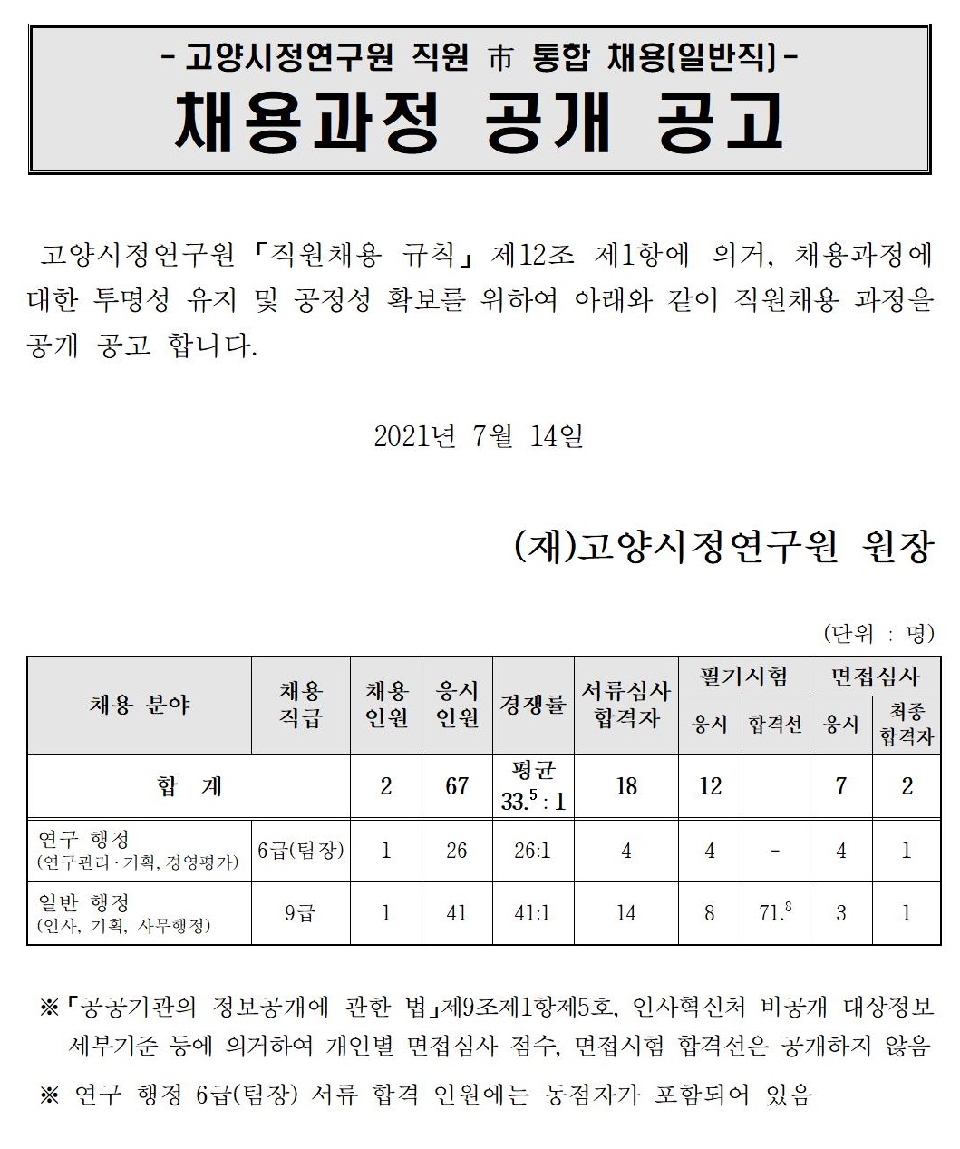 [제2021-32호] 2021년 고양시 공공기관 직원 통합채용(일반직) 최종 합격자 공고