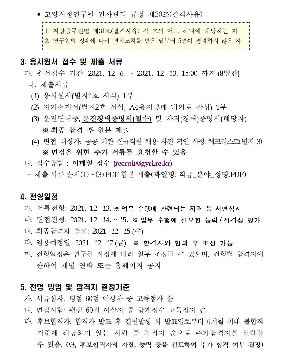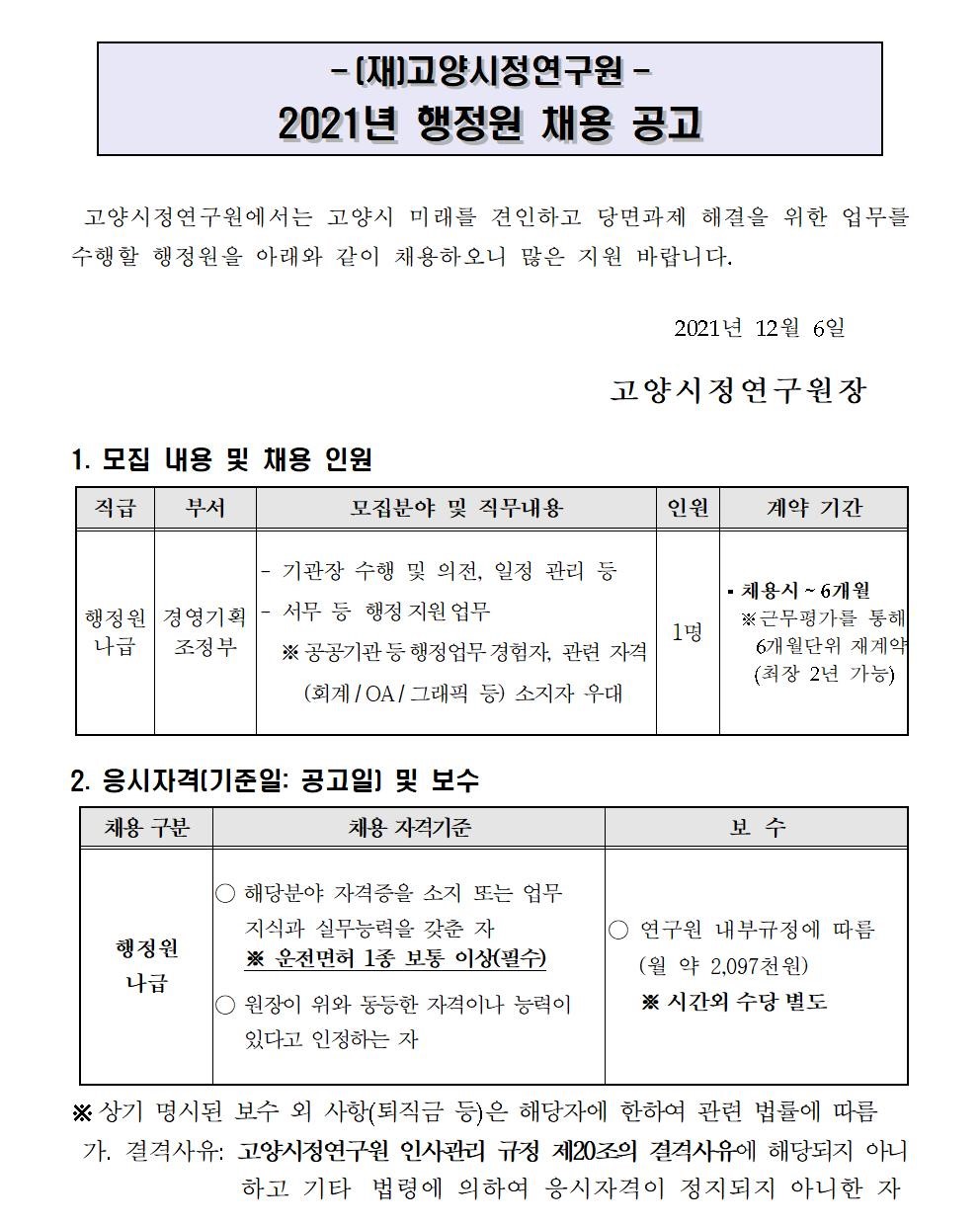고양시정연구원 2021년 정원외 직원(행정원) 채용 공고문(지원서 서식 포함).hwp