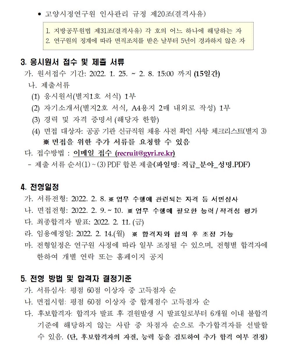 [제2022-2호] 고양시정연구원 2022년 위촉연구원 채용 공고