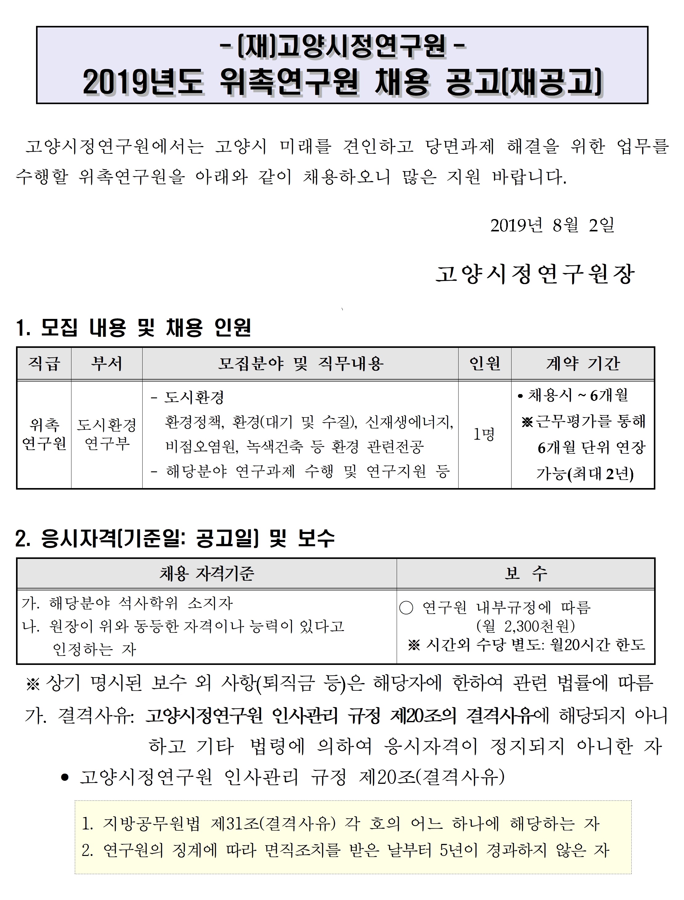 20190802_고양시정연구원 2019년 위촉연구원 채용 공고문_재공고.hwp