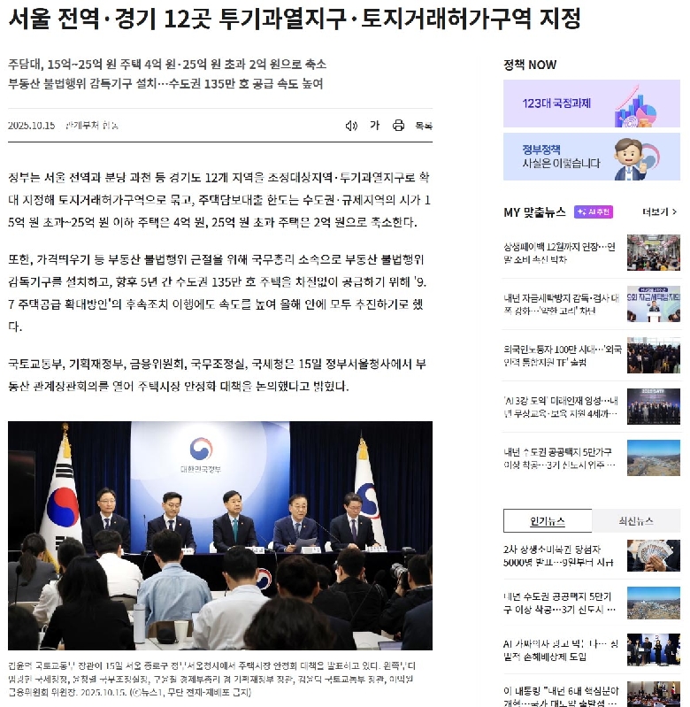 서울 전역 경기 12곳 투기과열지구 토지거래허가구역 지정