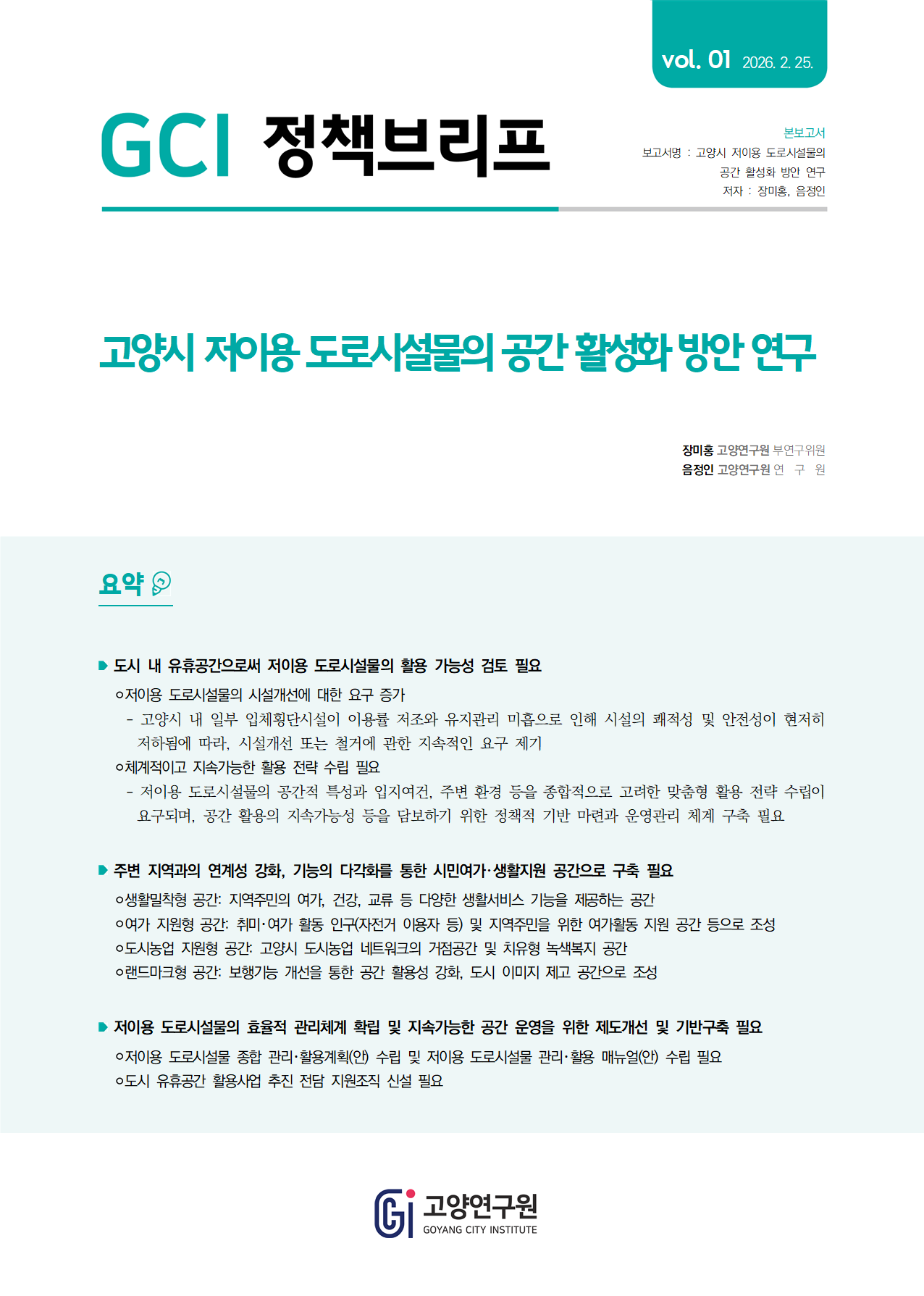 고양시 저이용 도로시설물의 공간 활성화 방안 연구